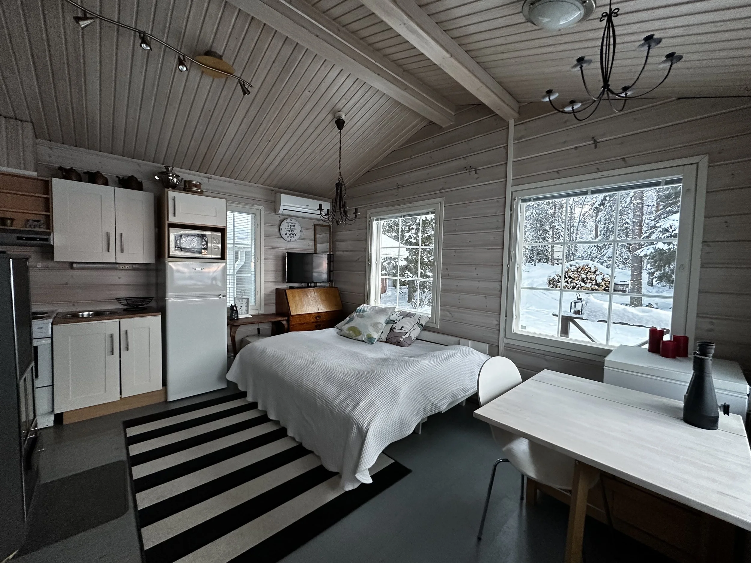 Just a couple of hundred meters away from the border of Lapland stands a cozy little cabin with its own sauna. The immediate presence of the sea guarantees breathtaking views and relaxing stay.
